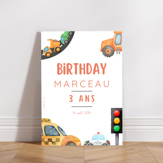 Thème Véhicules - Affiche anniversaire
