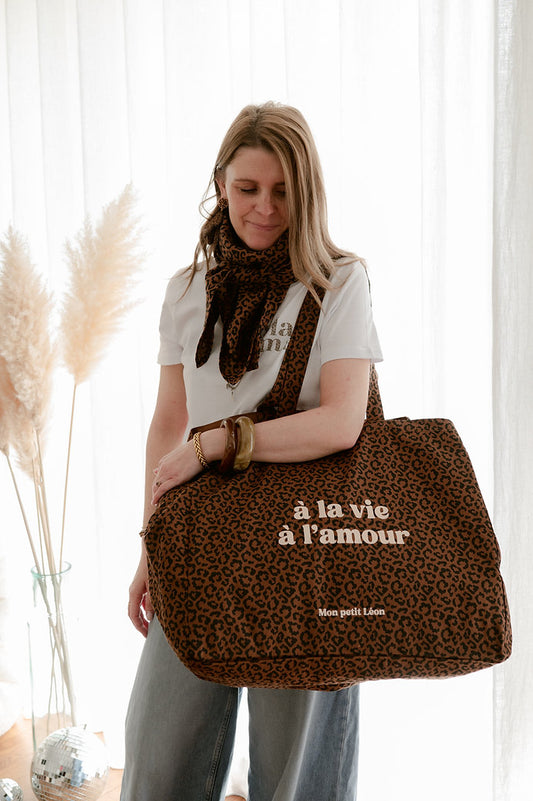 Cabas XXL Léopard marron À LA VIE À L'AMOUR