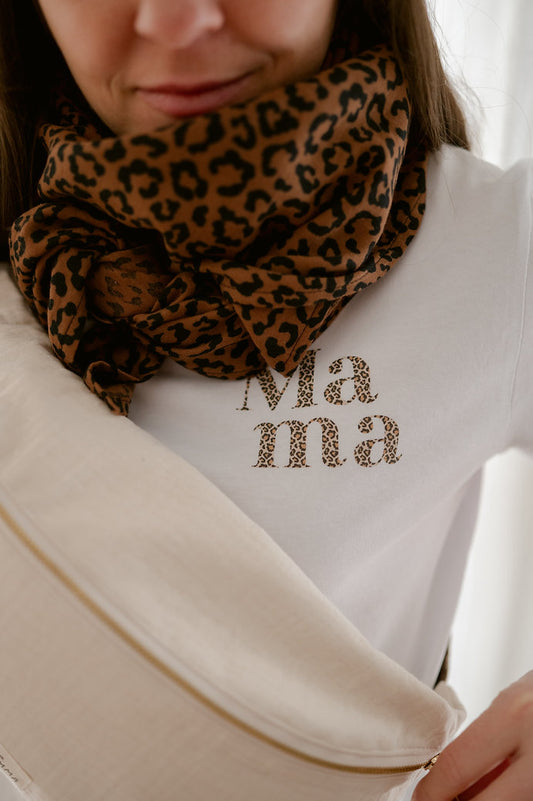 GRAND Foulard LÉOPARD Marron en gaze de coton