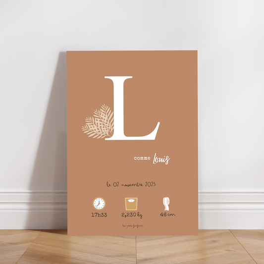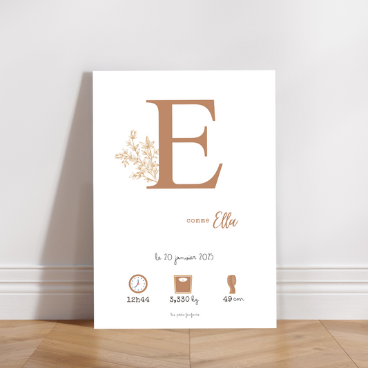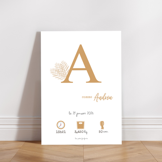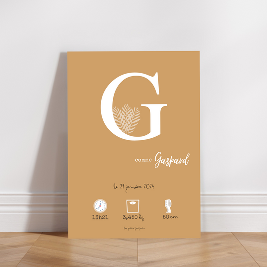 Affiche naissance personnalisée - Ocre miel sur fond blanc