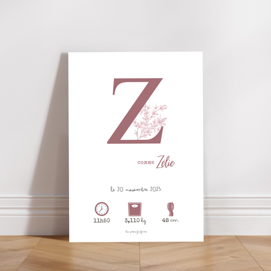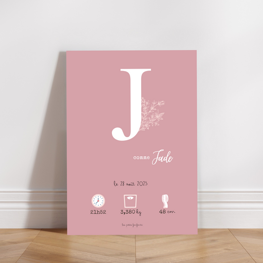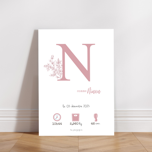 Affiche naissance personnalisée - Caramel sur fond blanc