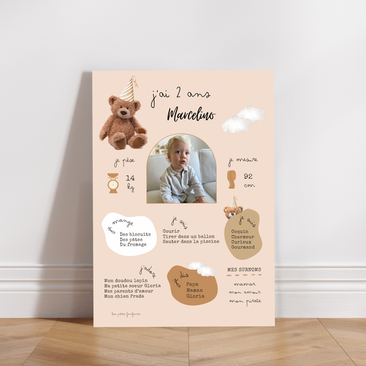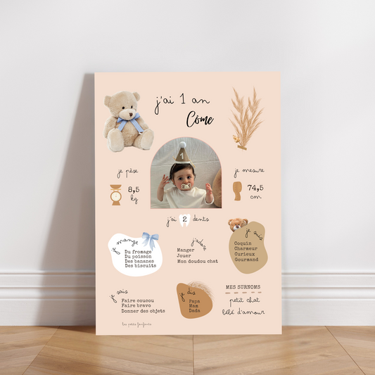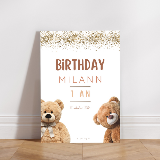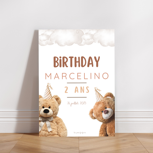 Thème Ourson version beige - Affiche bienvenue anniversaire