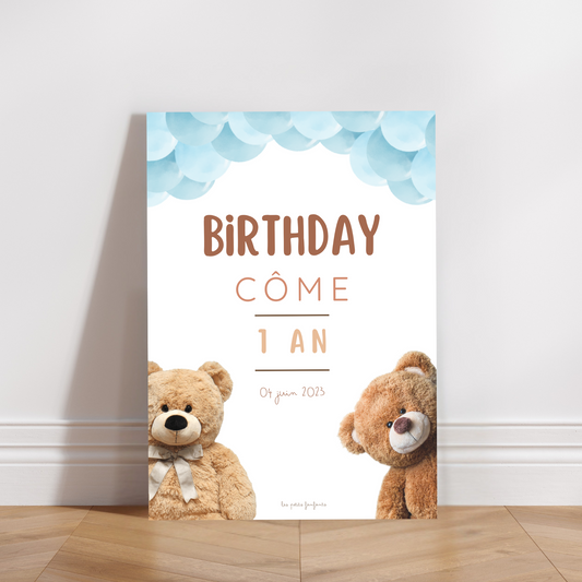 Thème Ourson version bleu - Affiche anniversaire