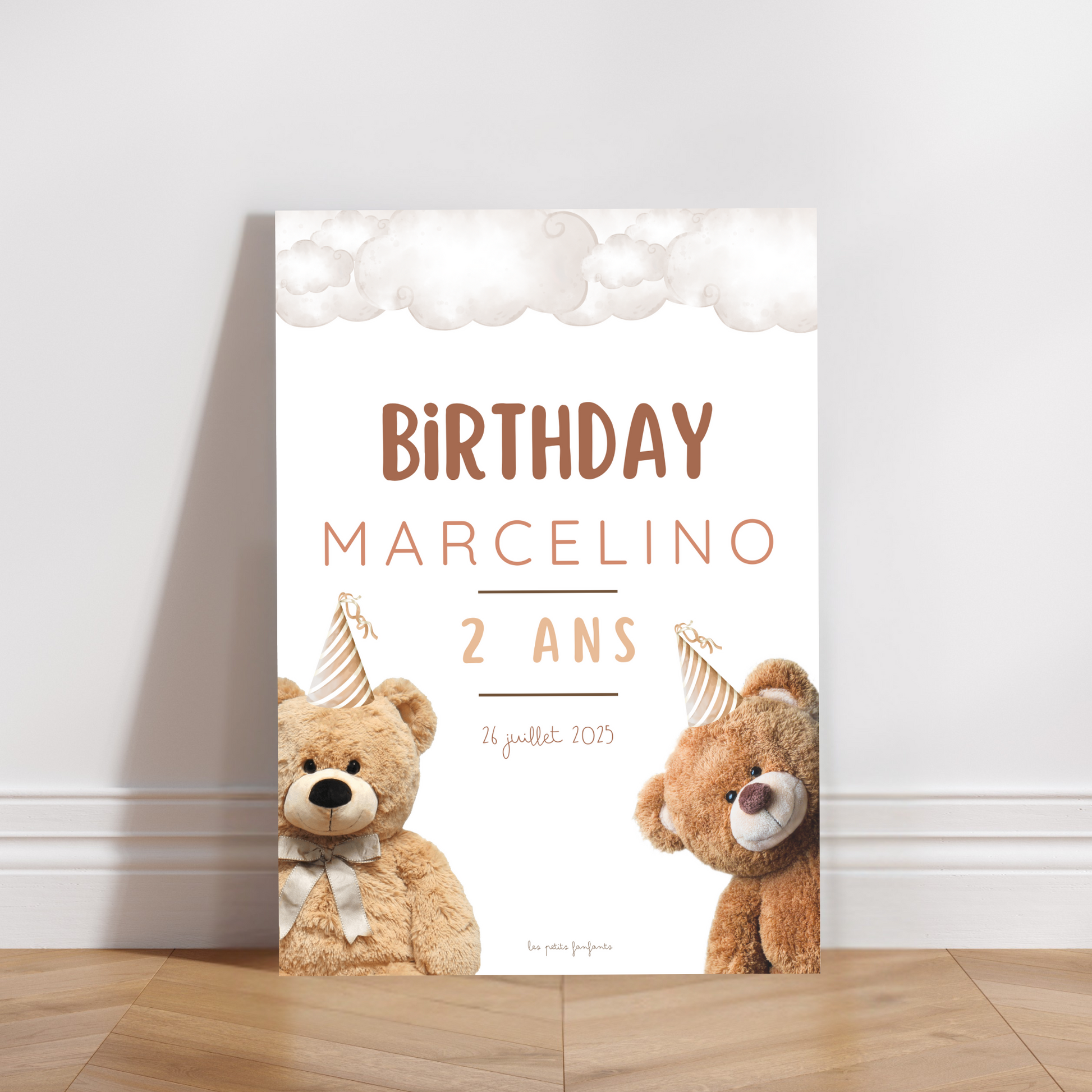 Thème Ourson version blanc - Affiche bienvenue anniversaire